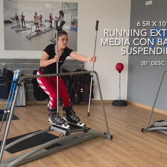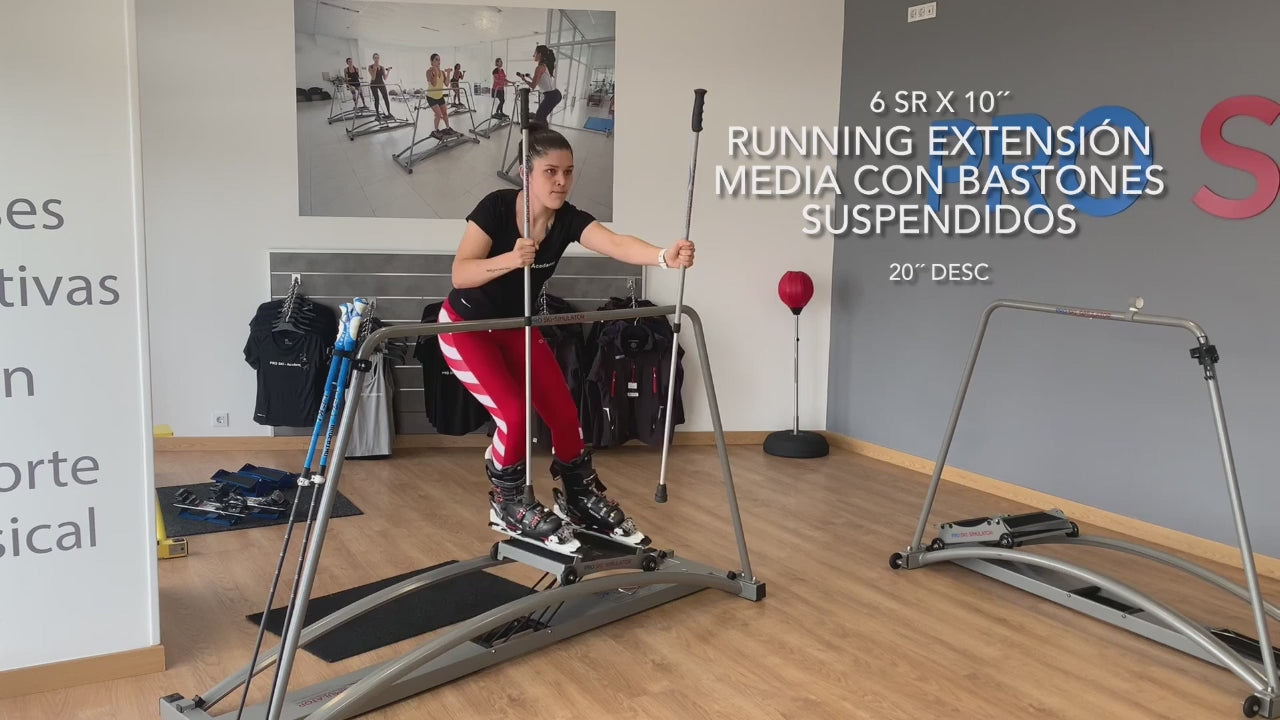 Lean on your boots as you do when skiing. Start with the series and repetitions indicated and if your physical conditioning allows it, you can increase speed, series and repetitions. Stretch at the end of the session.