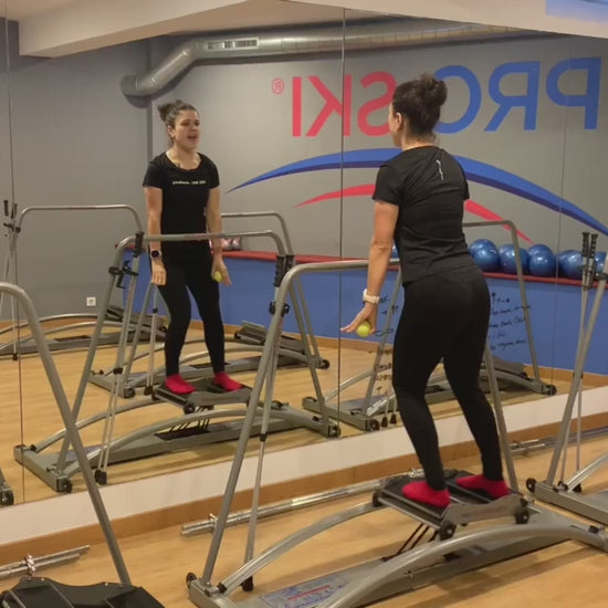 Recommendation: Prepare supplements with the minimum weights indicated and increase or decrease depending on the physical capacity of the user. Check the maximum weight set on your machine and evaluate your weight by adding the loads of the supplements. For balance exercises, we release 1 elastic. Pay attention to the dwell times on the lowering of squat exercises. Stretch at the end of the workout.