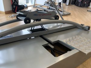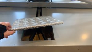 \nViene ensamblada debajo de la plataforma. Extraer antes de posicionar el equipo plano en el suelo.